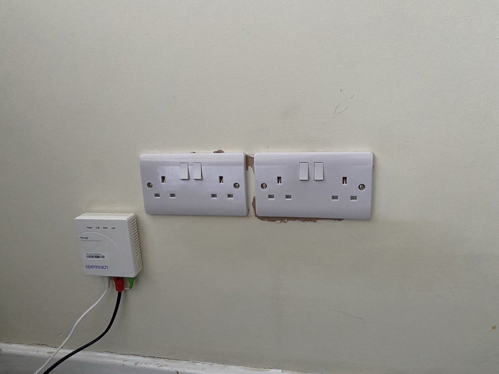 Two new back boxes where set into the plasterboard wall, and job done! The customer was very happy to no longer have to use an extension lead now 👍.