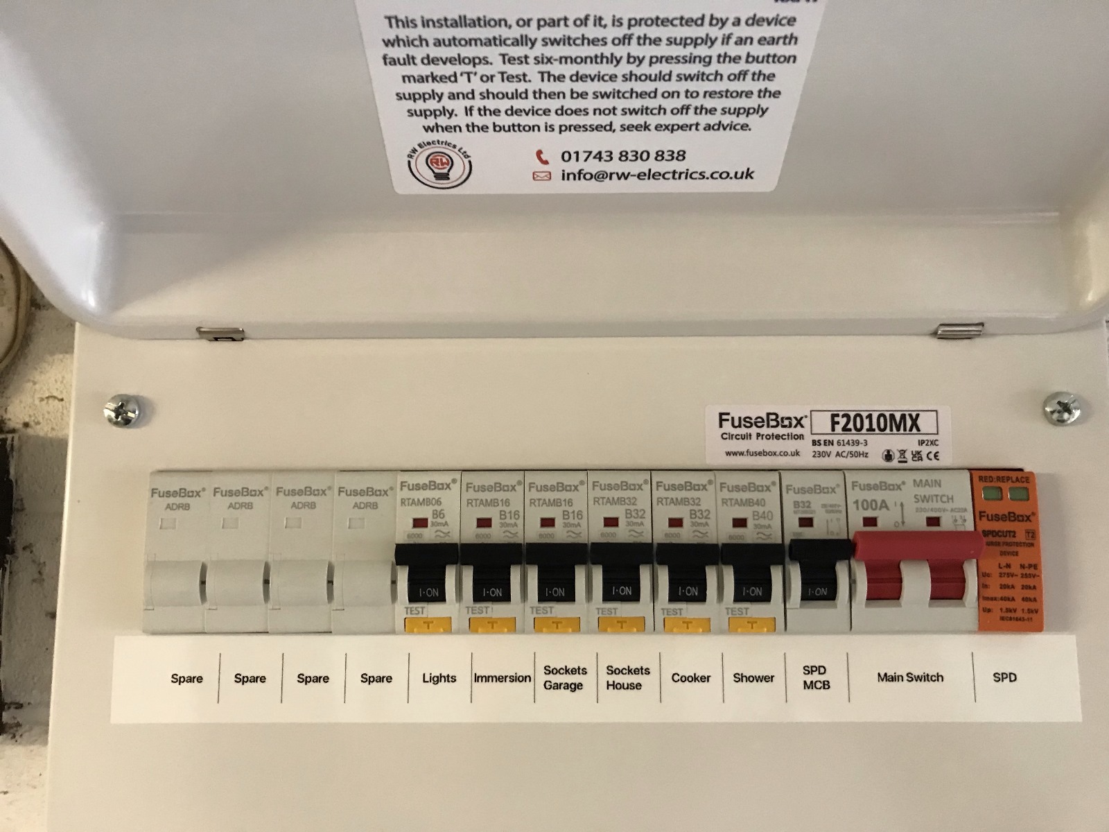 Out with the old… and in with the new! This new consumer unit was installed at a home in Bicton to replace an outdated and damaged rewireable fuse board.
